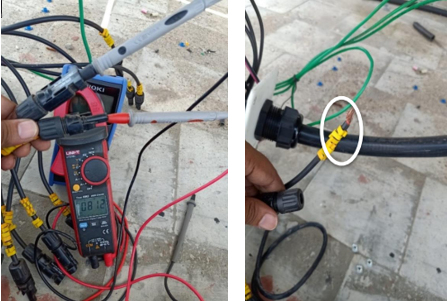 - Messung der Leerlaufspannung (VOC) von PV-Strings: Messen Sie die Leerlaufspannung der PV-Strings am Steckerende, nachdem Sie die Strings vom Wechselrichter getrennt haben.