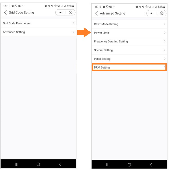 - Navigate to “Grid Code Settings” and select “Advanced Settings”
