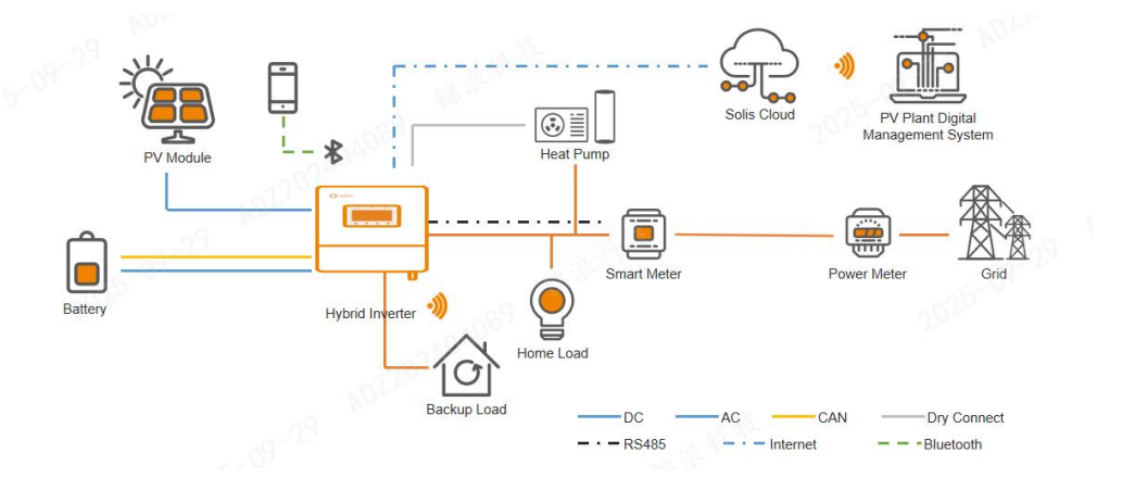 Please note that Solis provides only the inverter-side connection. For wiring and configuration on the heat-pump side, customers must consult the heat-pump installer.