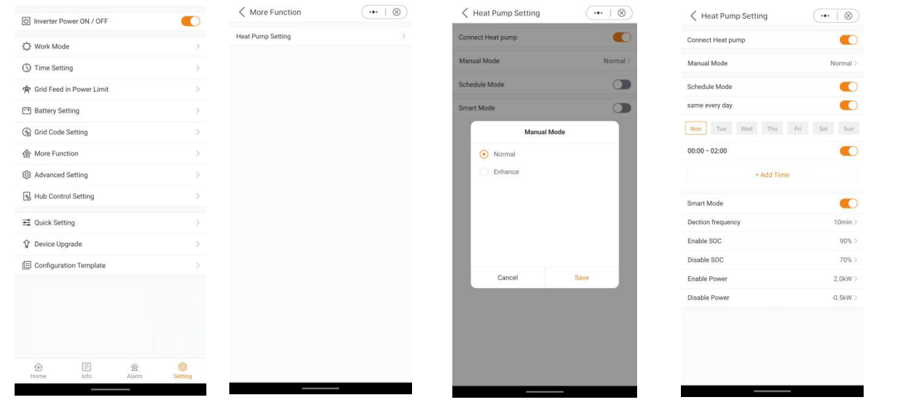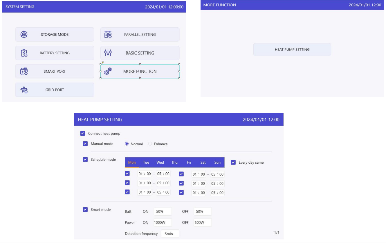 System Setting → More Functions → Heat Pump Setting