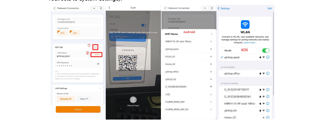 - Si la selección de Wi-Fi no aparece en iOS: usa Ajustes → Wi-Fi del sistema para conectarte y luego regresa a SolisCloud.