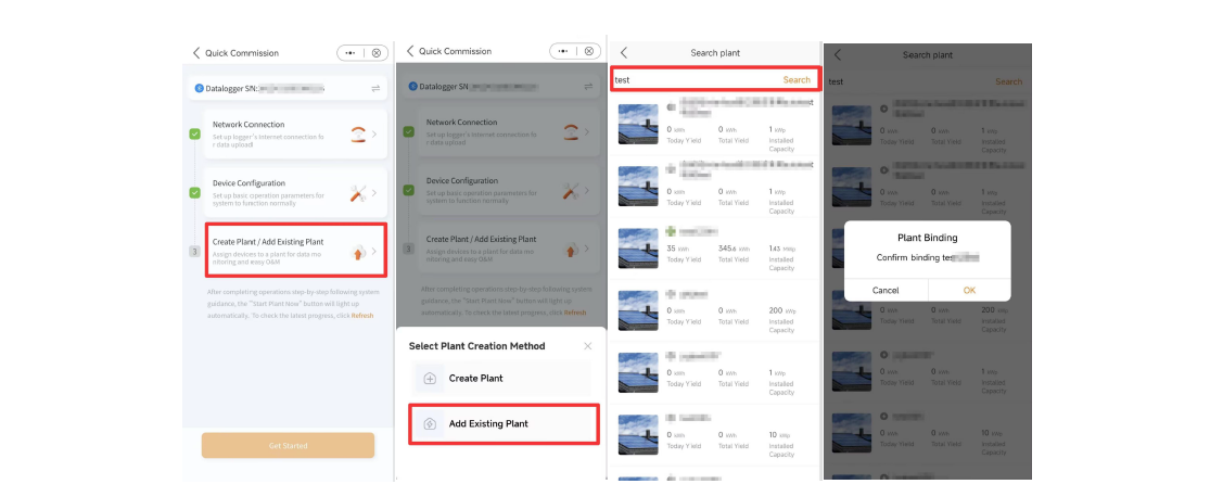Pulsa Add Existing Plant, busca entre las plantas asociadas a tu cuenta, selecciona la deseada y pulsa OK.