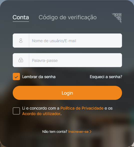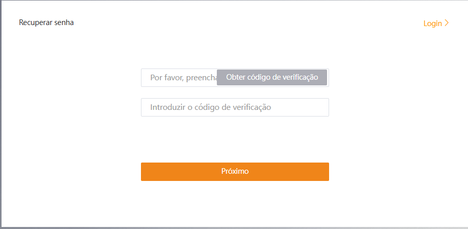 - Introduza o endereço de e‑mail com o qual criou a sua conta e clique em “Código de verificação”