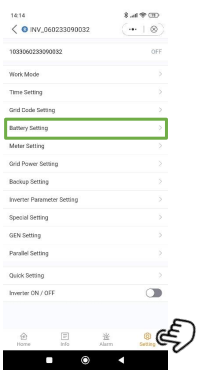 - Pritisnite ikono Nastavitve v spodnjem desnem kotu strani, da odprete stran z nastavitvami. Tukaj pritisnite Nastavitev baterije, nato Model baterije in izberite WECO HV kot model baterije.