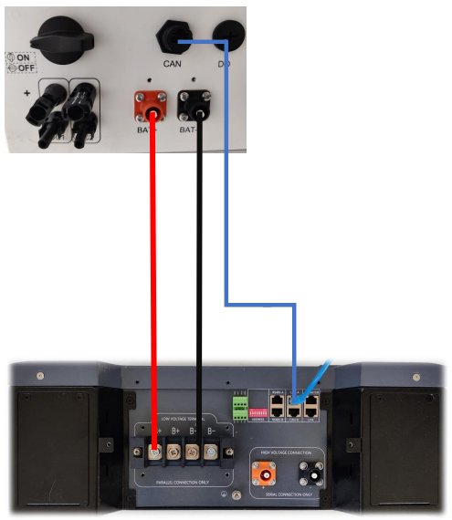 Za priključitev komunikacijskega kabla CAN uporabite vrata BMS. (Glej Za več podrobnosti razdelek »Lahko povezava«.)